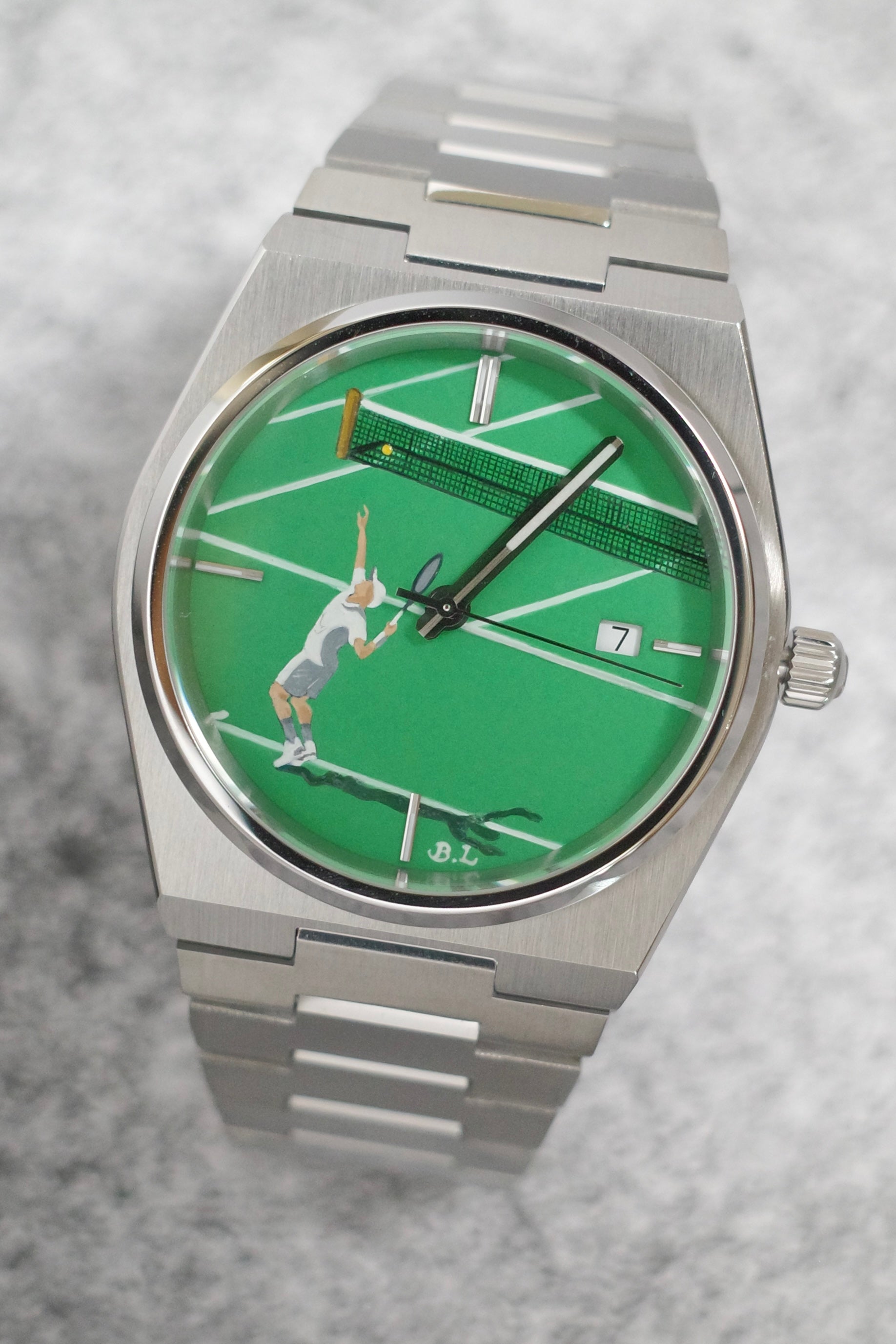 RBMODLAB Ace Serve — Hand-Painted Dial turns a sporting moment into wearable art. The green court dial features a hand-painted serve motif and court lines; a minimalist index design keeps the focus on the artwork. Each dial is hand-painted by our artist, so brushwork and color vary—every piece is unique.